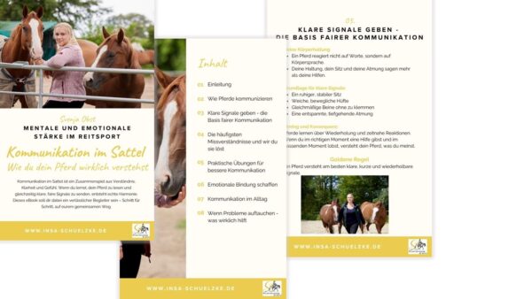 Kommunikation im Sattel ist ein Zusammenspiel aus Verständnis, Klarheit und Gefühl. Wenn du lernst, dein Pferd zu lesen und gleichzeitig klare, faire Signale zu senden, entsteht echte Harmonie. Dieses eBook soll dir dabei ein verlässlicher Begleiter sein – Schritt für Schritt, auf eurem gemeinsamen Weg.